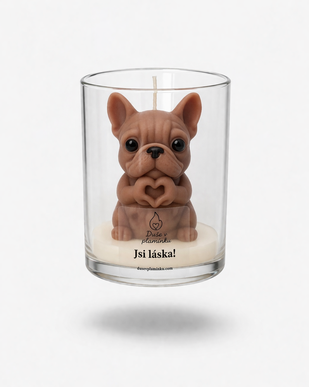 Tahle jedinečná svíčka ukrývá malého pejska, který dělá z tlapek srdíčko - symbol lásky, něhy a radosti z maličkostí. Jakmile ji zapálíš, prostor se začne plnit jemnou, hřejivou vůní kapučína, která navodí pocit klidu, pohody a chvíle jen pro sebe.